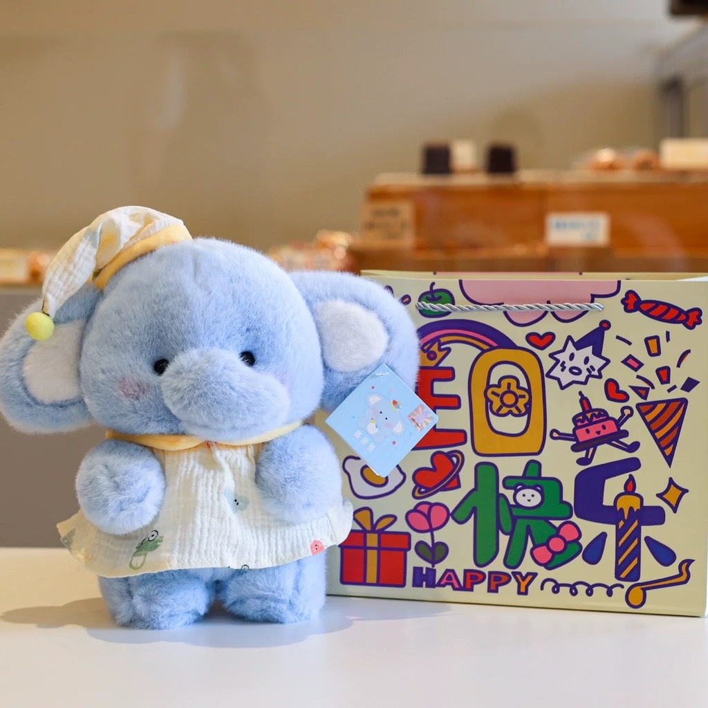 Nếu bạn đang tìm một người bạn vừa dễ thương vừa ngọt ngào thì Gấu bông Voi Zumi chính là chân ái. Với đôi tai to tròn mềm mịn, cái vòi ngắn xinh xinh cùng chiếc mũ ngủ đáng yêu, bé Zumi mang vibe siêu “healing”, chỉ cần nhìn thôi là đã thấy tan chảy rồi.